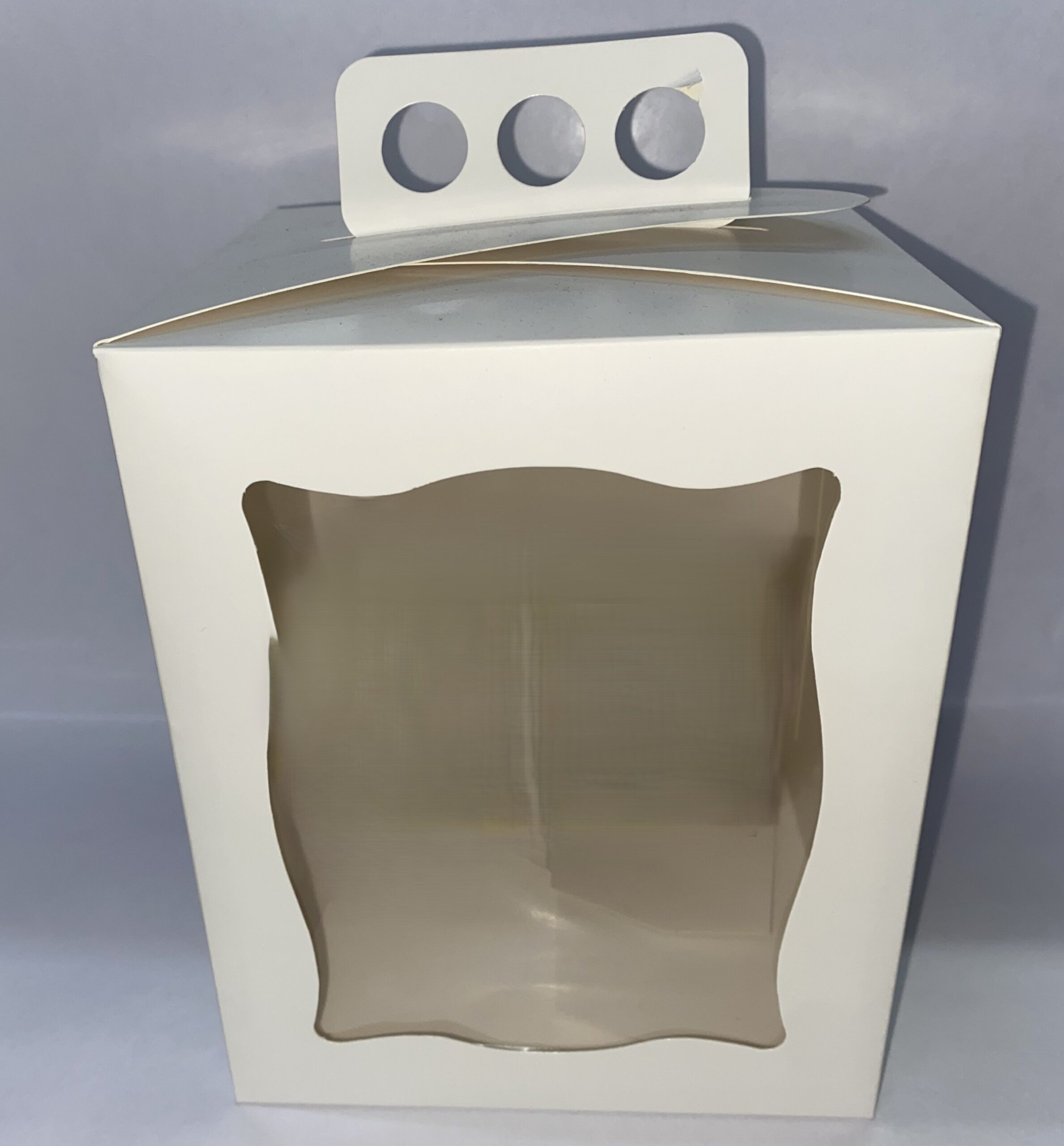 CAJA BLANCA CON VISOR Y MANIJA PARA PAN DULCE